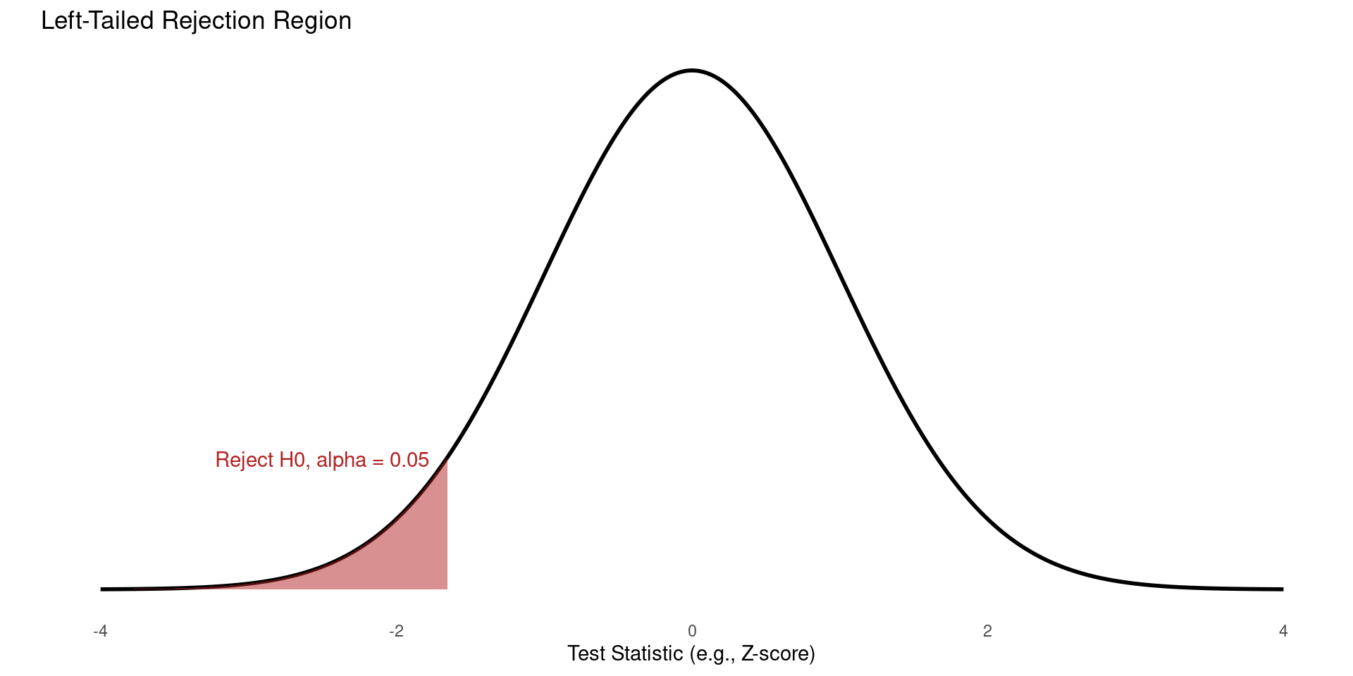 Null Hypothesis (\(H_0\)): The claim being tested. It’s the “status quo” or “no effect” hypothesis. It always contains an equality sign (\(=\), \(\leq\), or \(\geq\)).