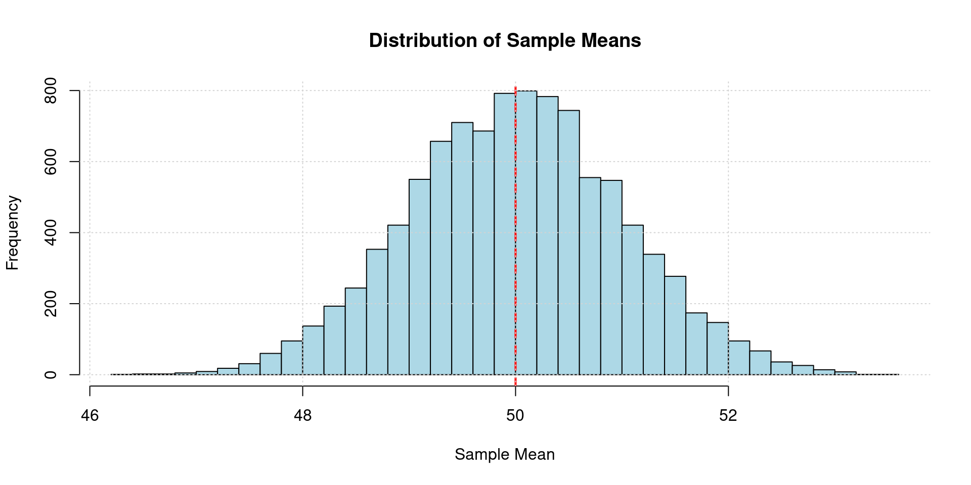 // Generate 10,000 sample means