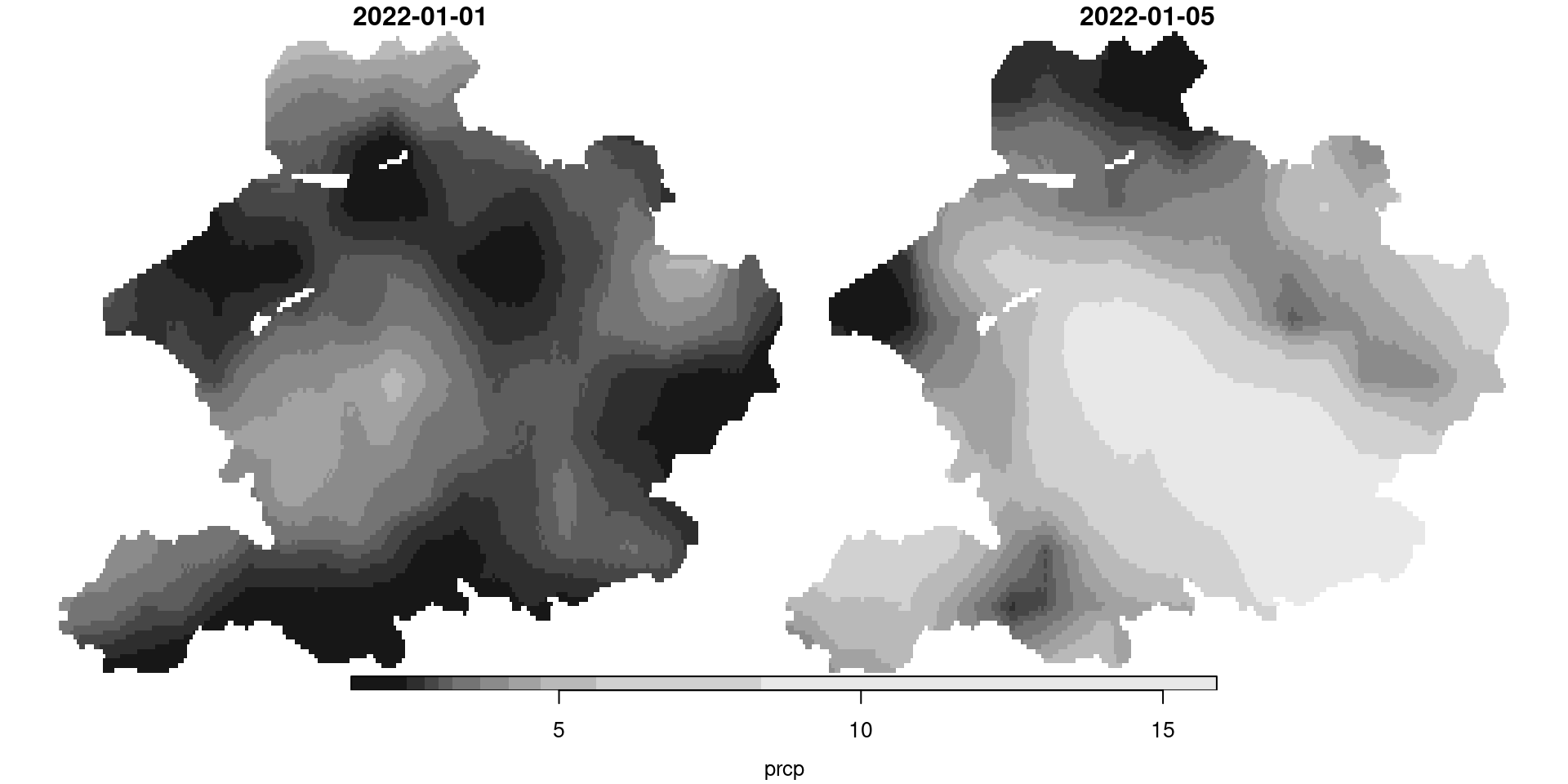 # Plot the precipiation of both 1 and 5 Januaryplot(climate_nl)