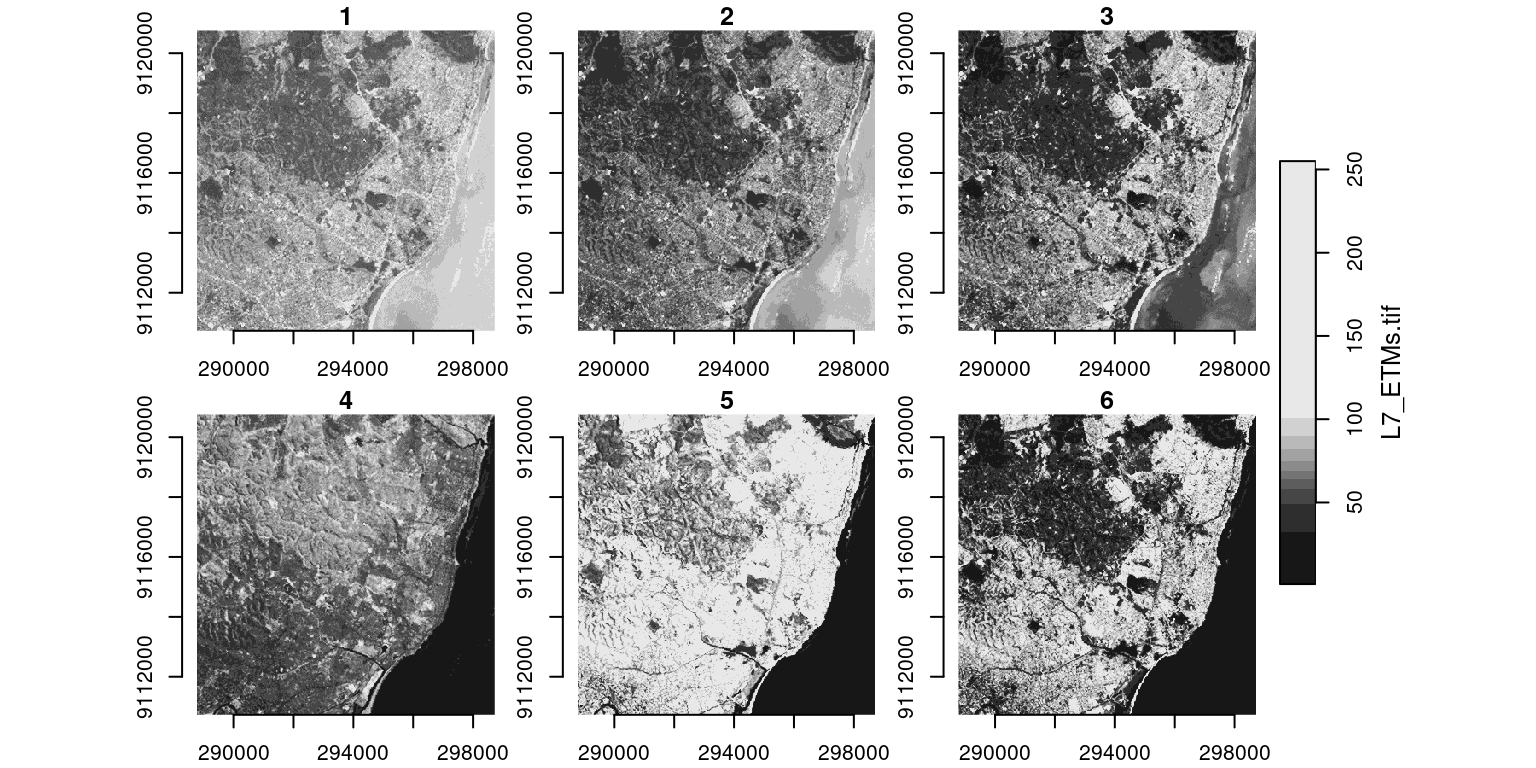 # Simple plotplot(landsat, axes =TRUE)