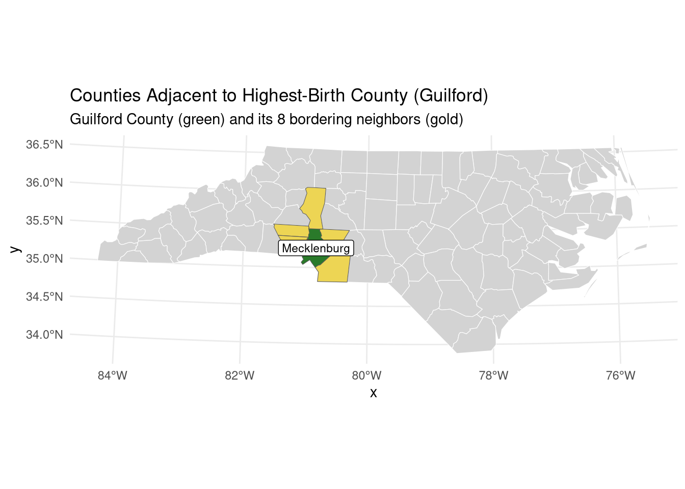 [1] "Highest birth county: Mecklenburg"